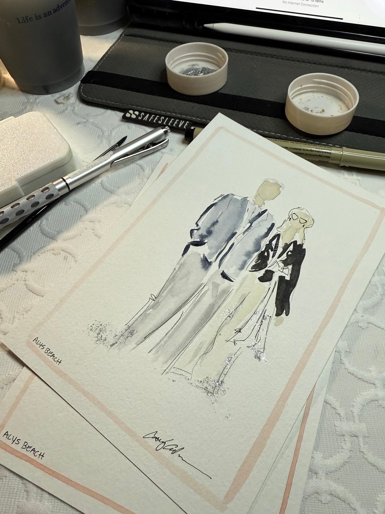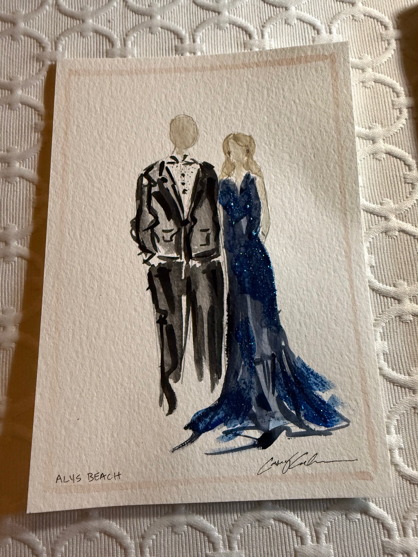 Live event painting for homeowners weekend in Alys Beach. Saturday evening was a Met Gala themed party, so this was a perfect gift for guests to take home!
