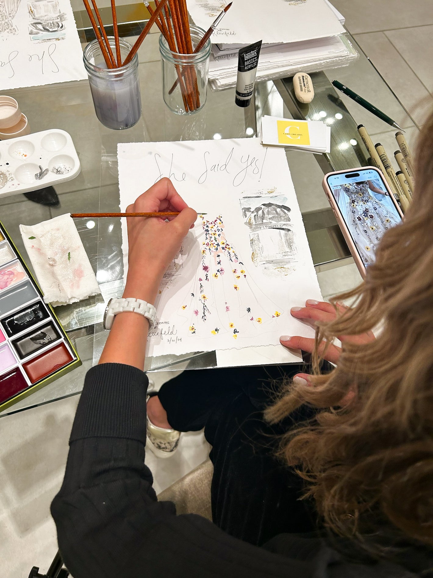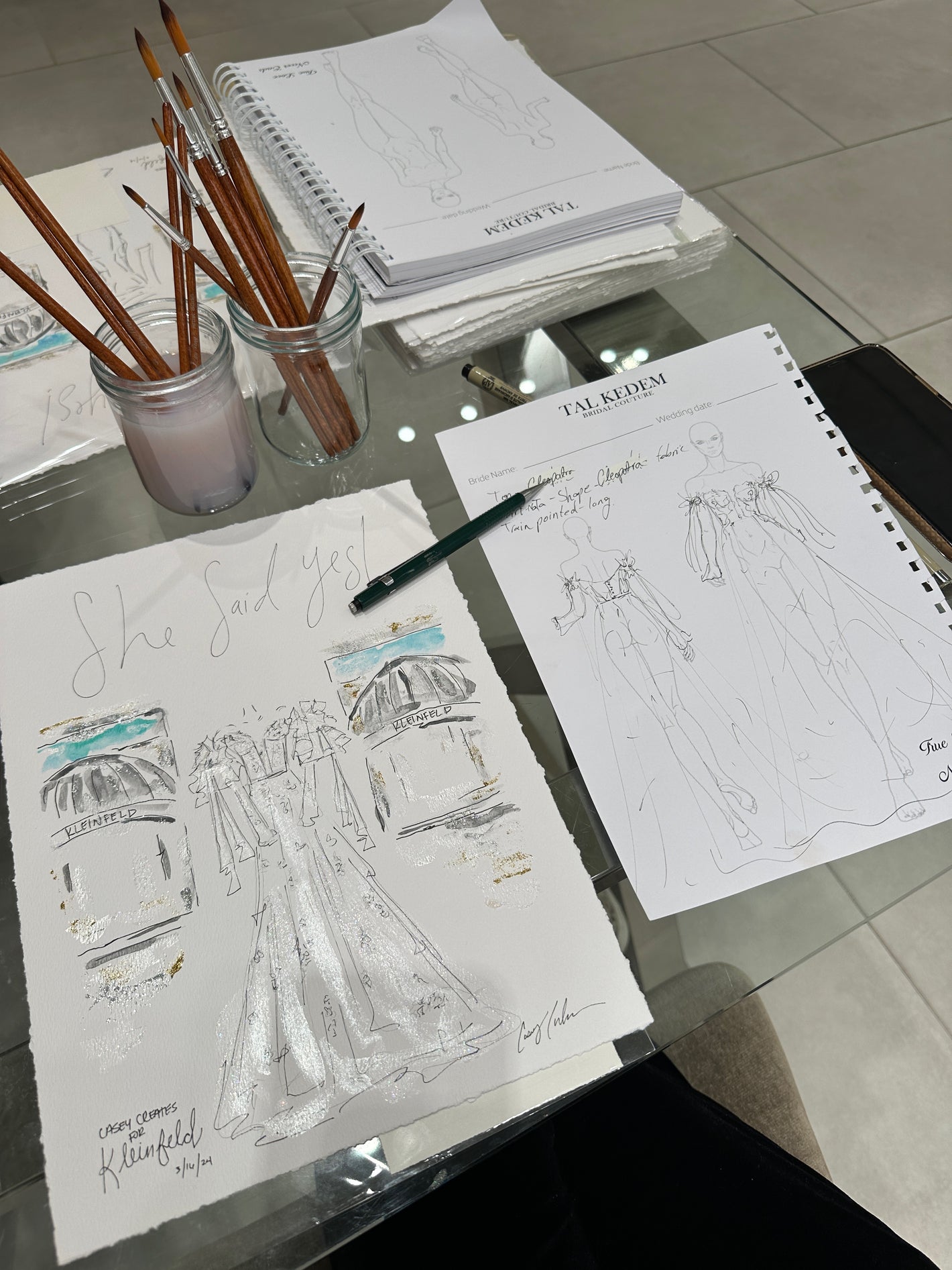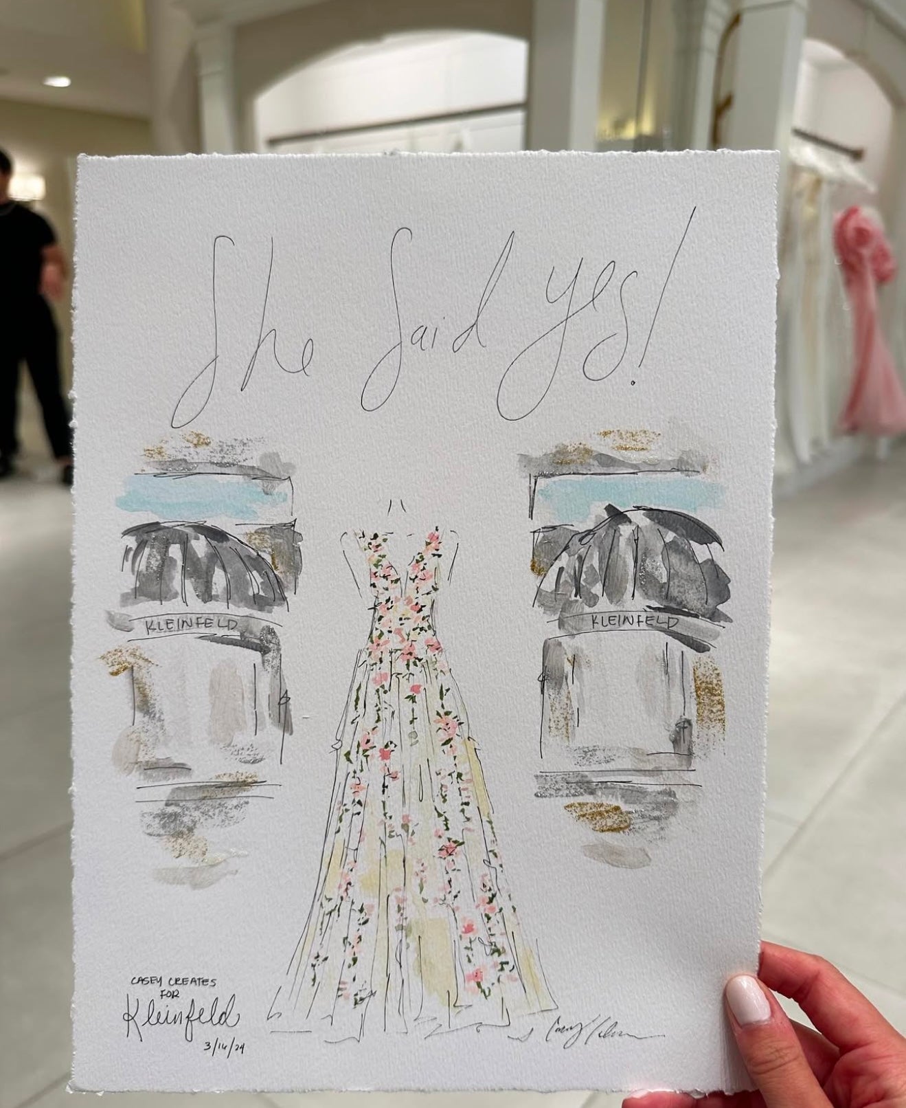 I created wedding dress illustrations for each bride that said "Yes!" to the dress. The artwork featured the wedding dress displayed between the iconic Kleinfeld awnings. This created a unique heirloom for the brides to take home on the day they found their dream dress!