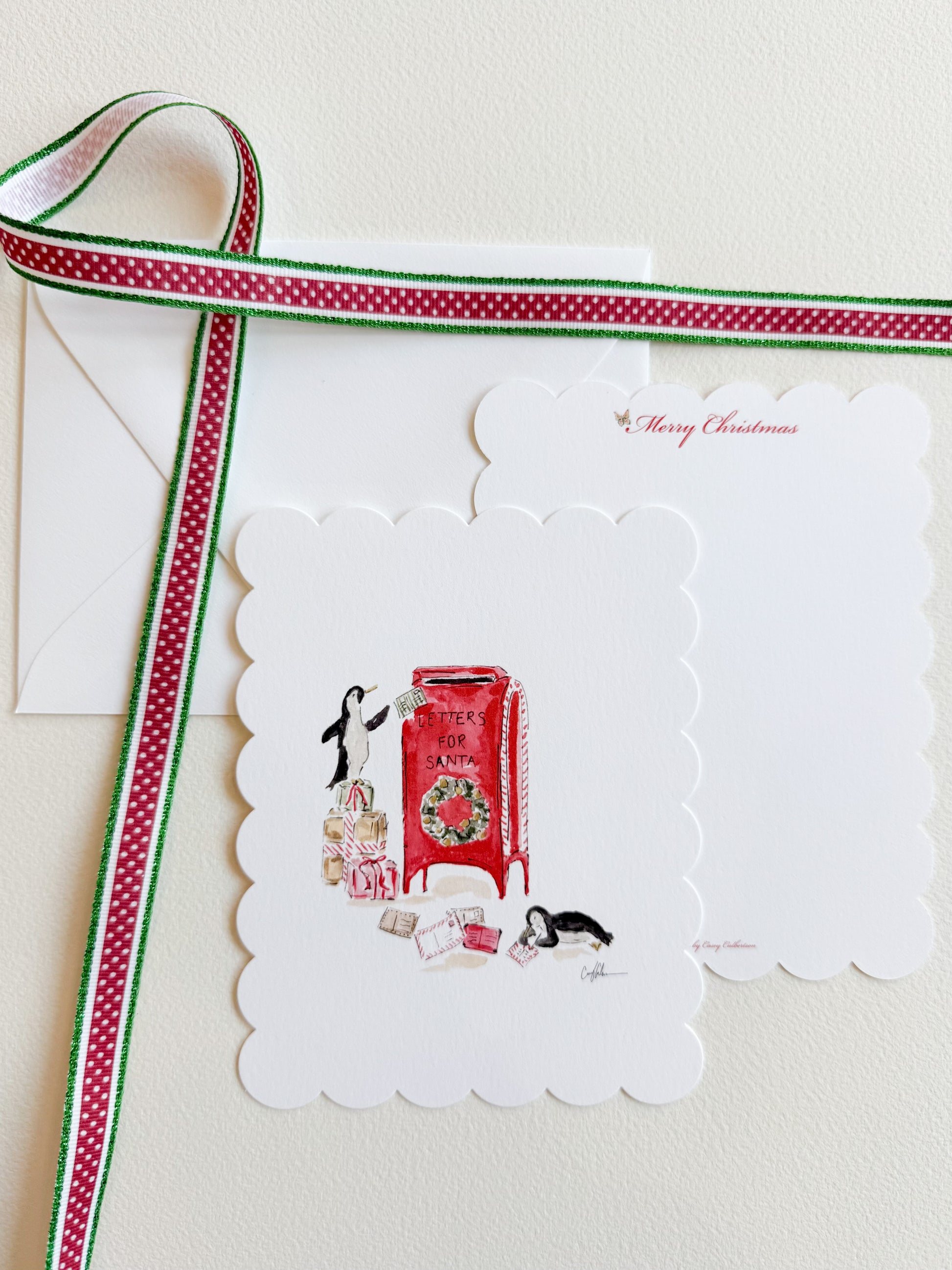 Christmas stationery is double-sided, featuring artwork on the front and “Merry Christmas” on the back. The back side also includes a delicate Christmas butterfly.